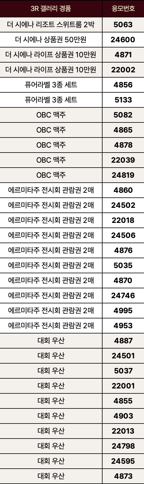 3R 갤러리 경품 당첨자